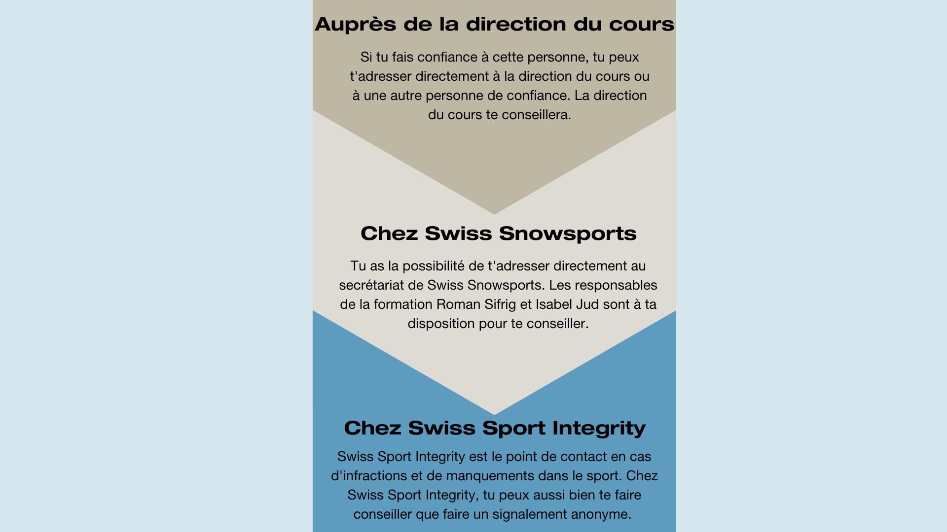 Tu as plusieurs possibilités pour nous contacter. Nous traitons ton rapport et la prise de contact de manière confidentielle. Tu ne dois pas être pénalisé(e) dans ta formation si tu t'opposes à des actes abusifs.